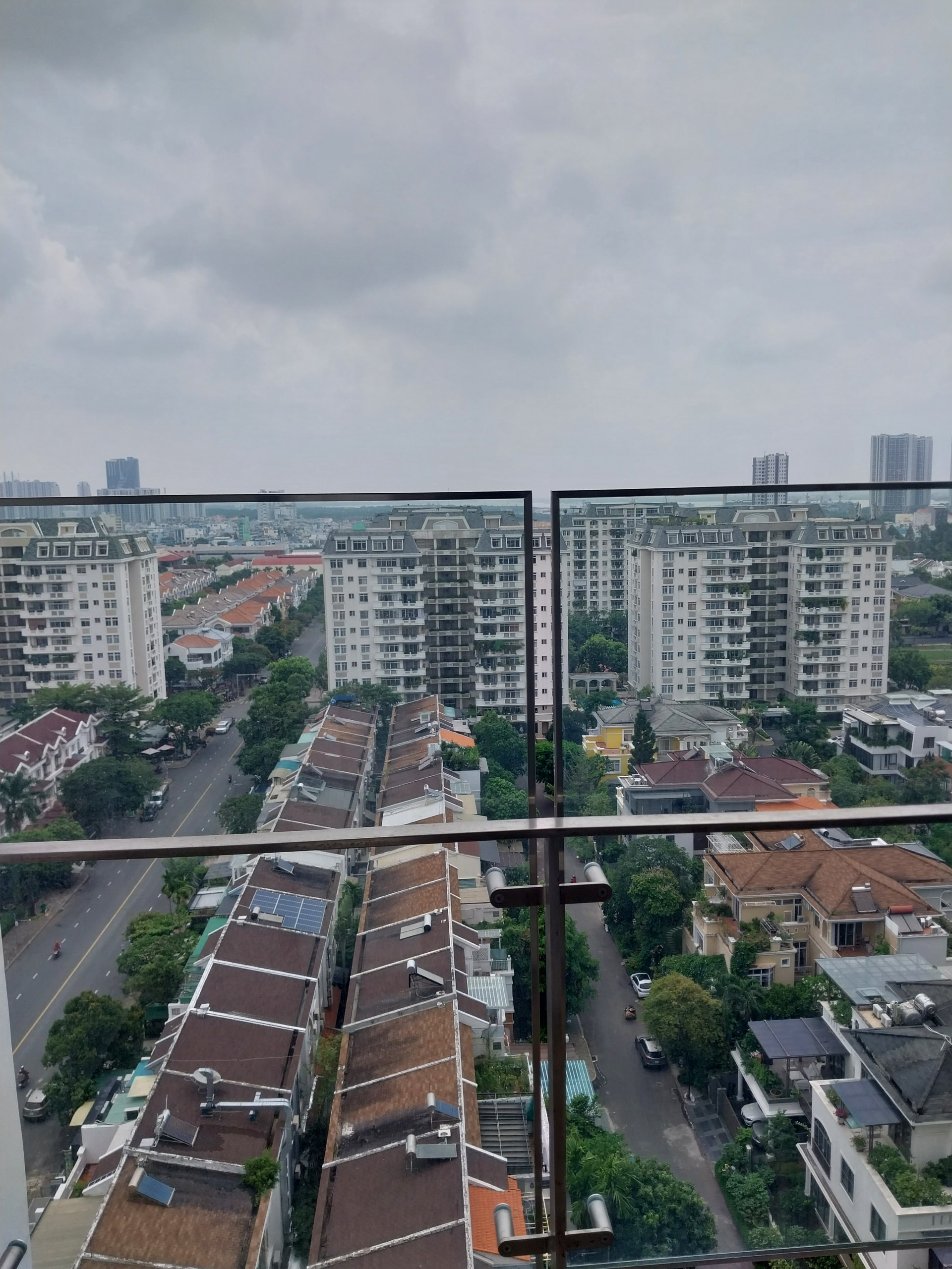 View ban công phòng khách nhìn ra công viên Nam Viên yên tĩnh, xanh mát.